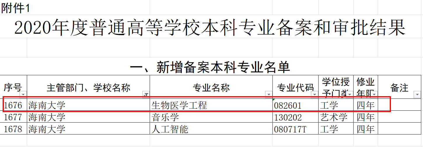 日前,教育部发布《教育部关于公布2020年度普通高等学校本科专业备案和审批结果的通知》(教高函〔2021〕1号),黑料 申报的生物医学工程本科专业(专业代码:082601)获教育部批准备案。
