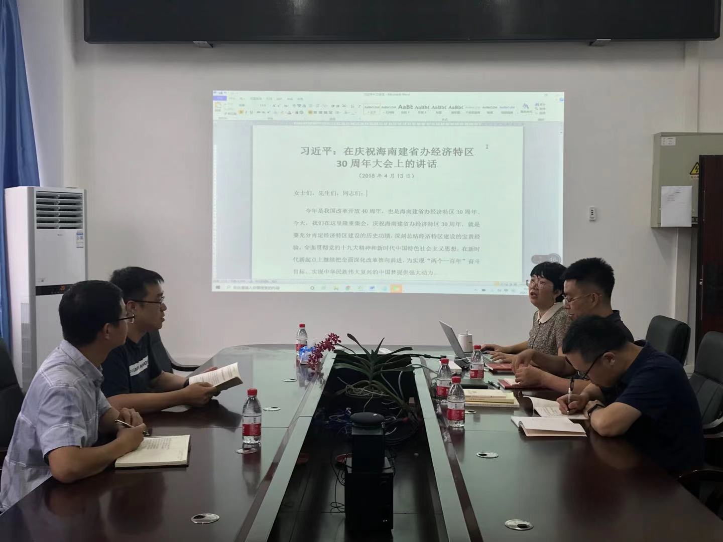 张云竹书记会上强调:一是中心组全体成员要进一步持续深入学习贯彻习近平总书记“4·13”重要讲话精神,全面领会精髓要义,学深悟透、融会贯通。二是要将学习贯彻习近平总书记“4·13”讲话精神同后续出台的《中国(海南)自由贸易试验区总体方案》和《海南自由贸易港建设总体方案》以及相关的专题制度结合起来学,更加系统全面地掌握海南自由贸易港建设的精神及内容。三是要进一步统一思想、凝心聚力,自觉把大家的激情、热情引导到贯彻落实习近平总书记重要讲话精神上来,深入学、反复悟,武装头脑、指导实践、推动工作,为海南建设自由贸易港做出我们应有的贡献,以优异成绩庆祝中国共产党成立100周年。