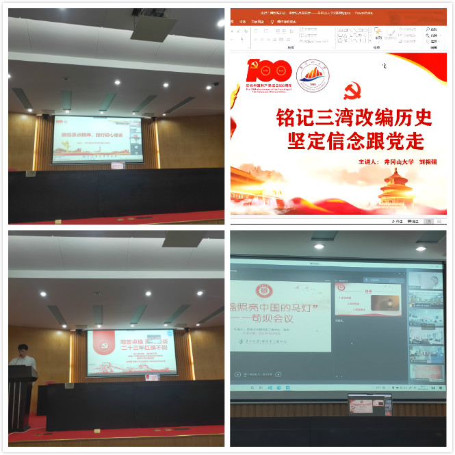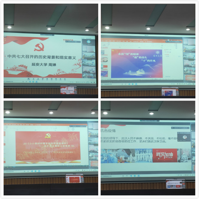 孙伟康发表了《艰苦卓绝,孤岛奋战,二十三年红旗不倒》的演讲,介绍了海南琼崖可歌可泣的革命奋战史和艰苦卓绝的橡胶种植历程,这种英勇顽强、开拓进取的精神成为了现今海南的自贸港建设的奋斗内驱力;贵州大学张杰发表《那盏照亮中国的马灯—苟坝会议》演讲,从历史背景到会议内容再到现实意义,让我们了解到如今苟坝村道路两侧的马灯,不仅照亮了漆黑的深夜,也见证了毛泽东挽救红军、改写中国命运的历史瞬间;延安大学的周婵以《中共七大召开的历史背景和现实意义》为题,向我们阐释了中共七大召开的历史背景及现实意义,让我们深刻认识到党的谋略与远见;深圳大学刘雨佳以《深圳特区的改革先锋袁庚》为题,讲述了袁庚披荆斩棘,突破僵化的计划经济体制,引入了市场经济从而引导了那个时代的潮流;北京科技大学许浩以《小小钢球所蕴含的科技报国情怀-我听胡院士讲党史》为题,从小小的钢球出发,动情的讲述了他的老师胡院士拳拳的爱国心和科技报国的艰难历程。华中科技大学黄士娟发表《从抗战到抗疫,时82年的两次武汉战斗》演讲,给我们讲述了时隔82年的两次武汉战斗史,虽然战斗性质不同,但武汉精神却在一直延续;在学生代表们的动情讲述中,我们重温了那段悲壮的革命岁月,也将坚定不移的跟党走中国特色社会主义道路,为全面建设社会主义现代化国家、实现中华民族伟大复兴中国梦贡献青春力量。