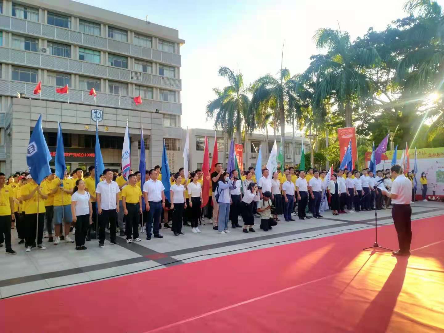 党员、入党积极分子于参加学校组织的“师生接力重走长征路”活动。从学校行政楼广场出发,7:40顺利与其他28个学院会师思源礼堂。