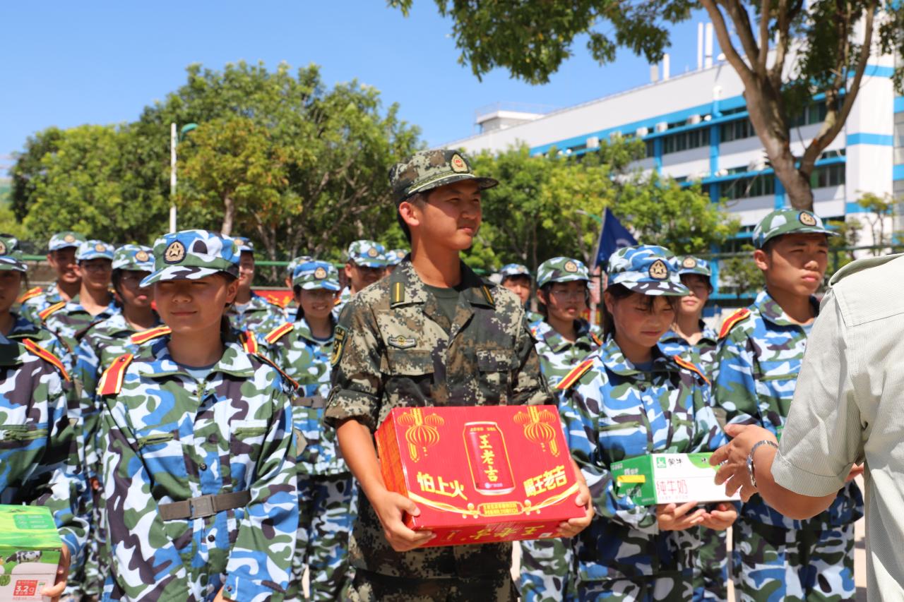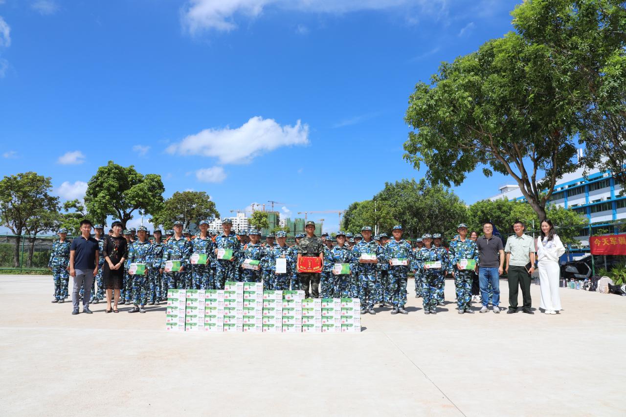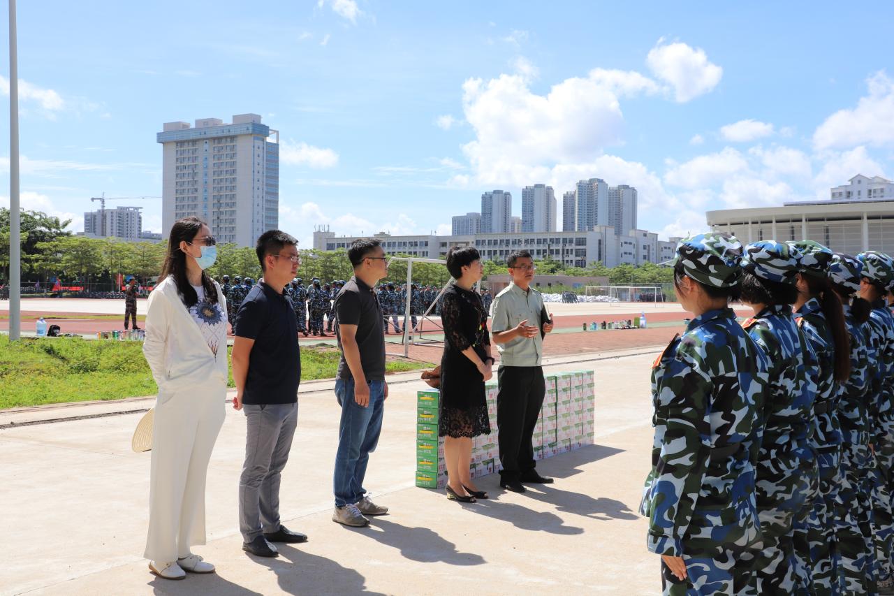 讲话后,刘谦院长和张云竹书记共同为新生发放了慰问品,为2021级新生带去夏日的清凉,希望同学们继续发扬军训精神,在刻苦求学的同时不忘强身健体,增强体质。