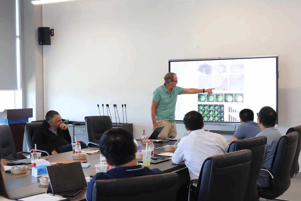 26日下午,校长骆清铭院士在学院会见了来访专家,并带领他们参观了fMOST成像平台和MRI平台;27日上午,Frits Alan Thorsen教授和Olivier Keunen研究员作客生物医学工程领航讲坛,为全院师生带来两场精彩的学术报告;27日下午,专家们与多个课题组座谈交流,就磁共振成像及图像处理、肿瘤免疫成像、神经肿瘤成像等合作内容开展深入研讨,院长李鹏程教授全程参加会议。