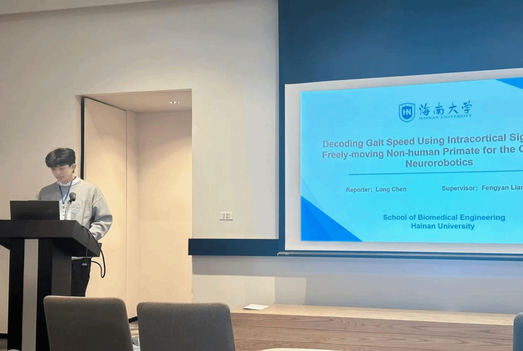 研究生陈龙在Neurorobotics分会场进行了题目为《Decoding Gait Speed Using Intracortical Signals in a Freely-moving Non-human Primate for the Control of Neurorobotics》的报告。
