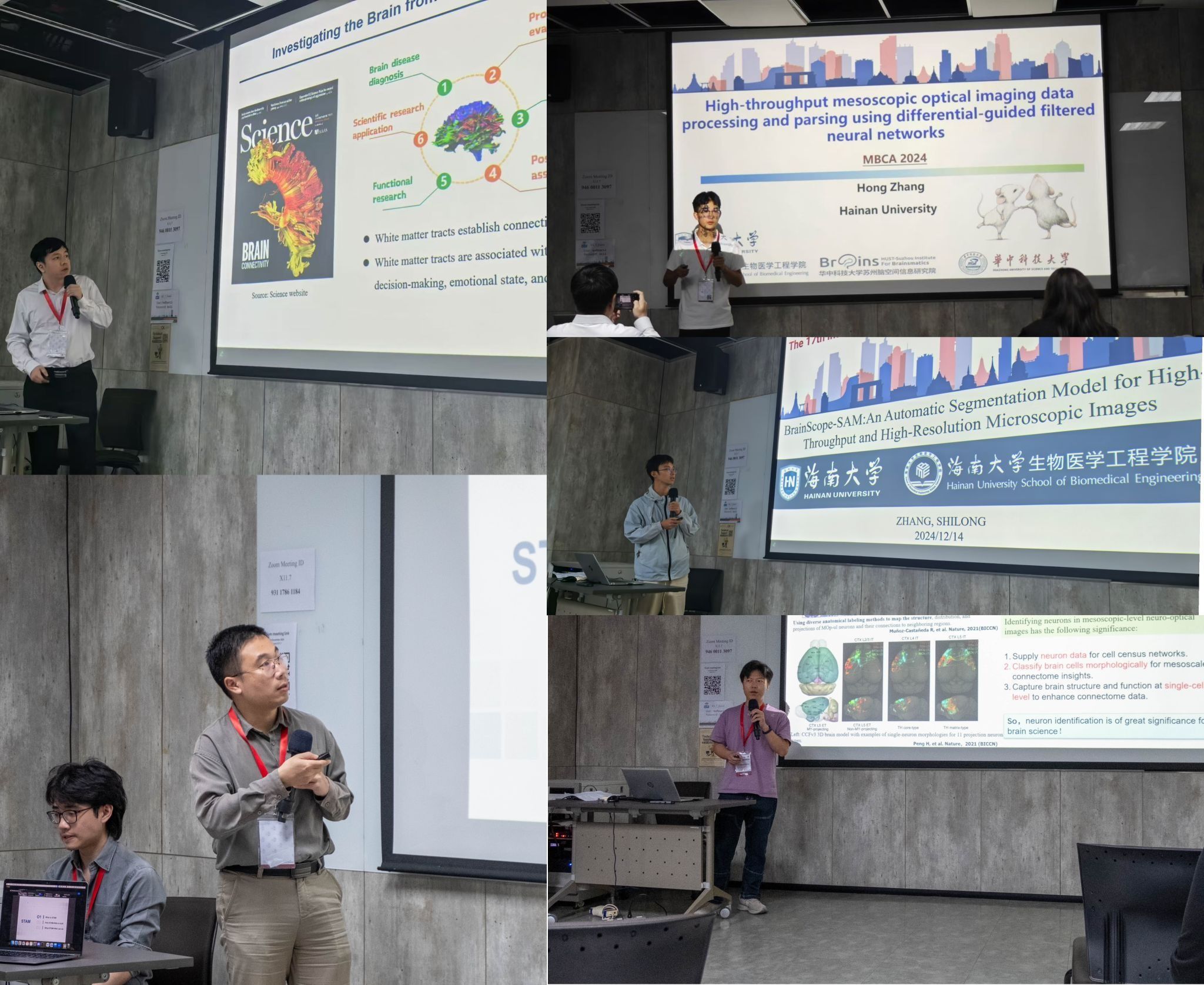 多名师生受邀参会。大会期间,李安安教授、丰钊研究员与卓俊杰副教授共同担任The International Workshop on Mesoscopic Brain-wide Connectivity Atlas (MBCA 2024)研讨会的联合主席,并主持了相关议程。丰钊研究员作了题目为《A visualization and computation platform for the 3D stereotaxic mouse brain atlas with single-cell resolution》的报告。肖驰副教授作了题目为《Estimate the 3D Fiber Orientation Distributions of White Matter in the Mouse Brain by Integrating Mesoscopic Nissl-Staining with dMRI Data》的报告。