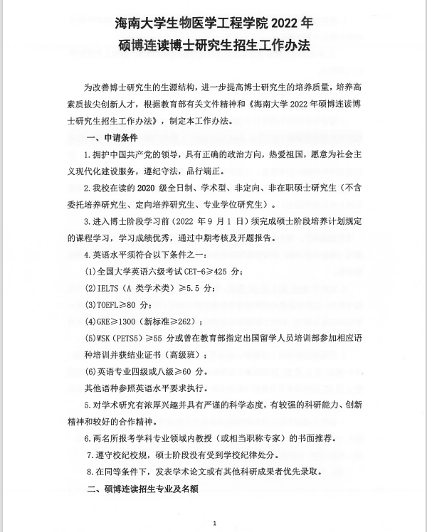 黑料 2022年硕博连读博士研究生招生工作办法