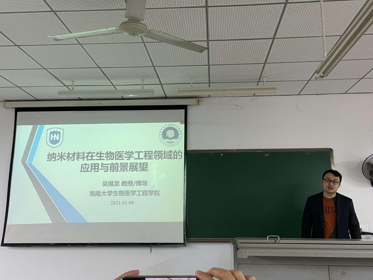 由于纳米材料有独特的物理化学性质和较好的生物相容性,纳米材料在生物医学领域的应用越来越广泛,纳米材料是什么?纳米材料在医学领域有什么应用?纳米药物是什么?纳米药物的优势和应用又有什么?吴锡龙教授用这几个问题带我们进入纳米材料的世界。一般认为纳米尺寸界定在1-1000nm之间(国际公认纳米尺度空间为0.1-100nm),其中小于1nm为原子团簇,100-1000nm为亚微米粒子,1-100nm粒子或微小结构,处于原子簇和宏观物体交界的过渡区域。比如花粉是纳米级粒子,新冠肺炎病毒也是纳米级的;纳米材料是指在三维空间中至少有一处处于纳米尺度范围(1-100nm),或者由他们作为基本单元构成的材料,这大概相当于10-100个原子紧密排列在一起的尺度。比如石墨烯,纳米管,纳米金等。纳米材料在生物医学领域应用的研究有:纳米生物多功能载体分子的研究;纳米分子马达,纳米分子马达由生物大分子构成,利用化学能进行机械做功的纳米系统;DNA纳米机器人,DNA纳米机器人最核心的技术就是DNA折纸技术,在此基础上,融合了一些可调控的机制,使得DNA不止能被折成各种结构,还具备了动态机械功能;细胞分离技术,利用纳米复合粒子性能稳定、不与胶体溶液反应且易于实现与细胞分离等特点,可将纳米粒子应用于诊疗中进行细胞分离。纳米材料用于生物体成像;磁性纳米材料,纳米化铁是磁铁成像成像材料中最普遍使用的成分,医学核磁共振,磁粉成像,电阻抗成像等;光学纳米材料;纳米生物传感器等之类的应用。让同学们见识到了纳米材料在生物医学应用的广阔前景。吴锡龙教授告诉同学们,除了纳米材料之外,纳米药物也是当前国际生物医药领域研究的热点,纳米药物是运用纳米技术研究开发的一类新型的药物制剂,比如纳米抗肿瘤药物、纳米多肽蛋白质药物以及非病毒载体纳米基因药物等。接着吴锡龙教授又说到,纳米药物的优势主要在降低毒性和增加效用,比起传统的药物优势是稳定性强,防止药物过早代谢或降解,减少正常器官的摄取,对人体伤害要小很多,具有丰富的形貌、可控的表面特征、多样的载体材料、便捷的靶向修饰等特点。