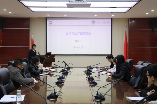 周非凡教授应邀到河南大学生命科学学院做题为“肿瘤光免疫治疗研究进展”的学术报告。河南大学生命科学学院生物学专业的全体研究生出席了报告会。