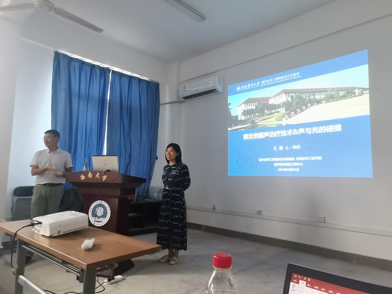 学者论坛第三期在学院314会议室召开,重庆医科大学和超声医学工程国家重点实验室博士后宋丹,为学院师生开展题为“微创超声治疗技术&声与光的碰撞”的学术讲座。