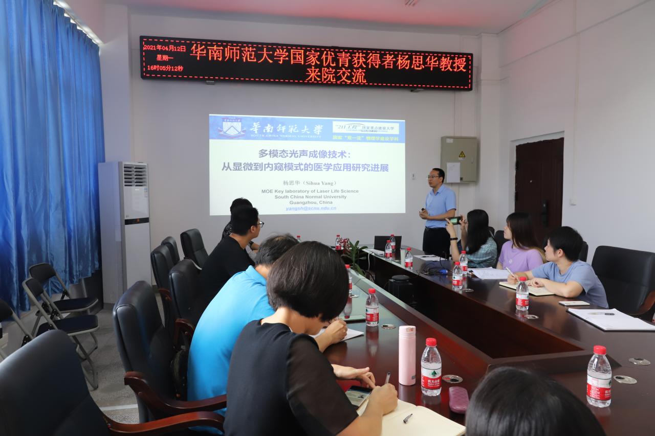 2021年4月12日下午,华南师范大学激光生命科学教育部重点实验室主任杨思华教授应邀分享多模态光声成像技术——从显微到内窥模式的医学应用研究。黑料