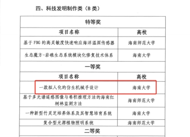 2021级硕士研究生庞思琪、郭城的作品《一款拟人化的仿生机械手设计》(指导老师:殷明、梁丰研、王啸)在众多作品中脱颖而出,荣获海南省一等奖。